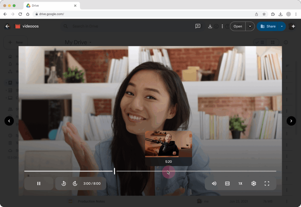 To use this feature, upload a new video to your Drive account (via web or mobile app) → Open the newly uploaded video in Drive web → hover your mouse over the video progress bar to see thumbnail previews and drag your mouse along the progress bar to quickly scrub through the video using the thumbnails.