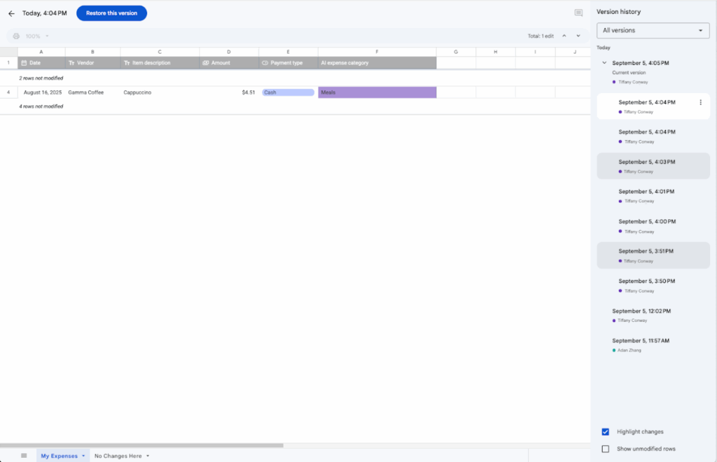 Understand changes more quickly with condensed version history in Sheets