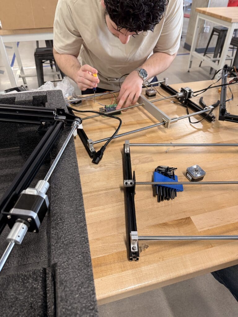 Each student contributes specialized skills: Patel’s experience helps inform Sabolski’s design, who is most proficient in CAD modeling. Boone’s automotive expertise gives him a unique perspective on how things fit together, providing insight into part design and manufacturing for ease of maintenance. Ahmad’s background in controls engineering and electric components help bring it all together with programming to give the final product the desired functionality.