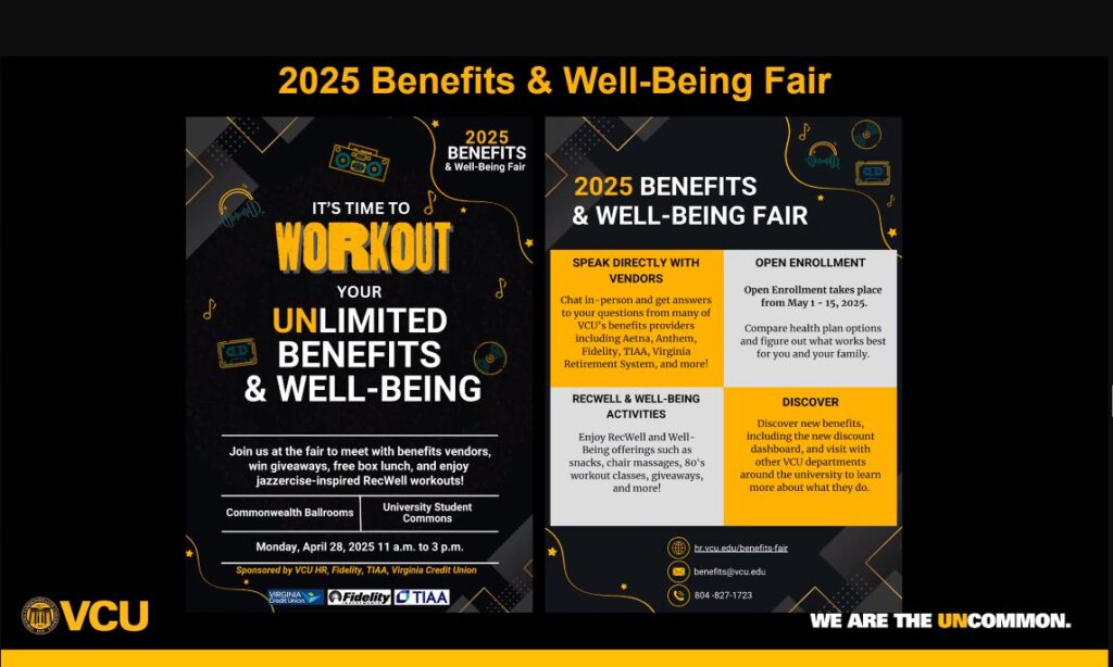 And, if you want to dress for the 80s come to the Benefits & Well-being Fair on Monday, April 28th.