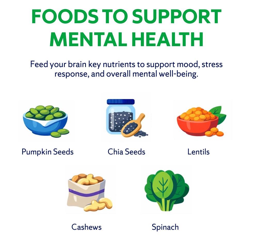 Mental health is shaped by many factors, including sleep, movement, stress, and social connection. Research shows that what you eat can also play a meaningful role in how you feel, since the brain relies on a steady supply of nutrients to support mood, focus, and stress response.