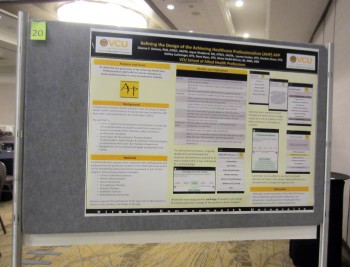 Dianne F. Simons of VCU School of Allied Health Professions won the people’s choice award for “Refining the Design of the Achieving Healthcare Professionalism.” Poster judges Ascione, Bruce Britton of Eastern Virginia Medical School and Julie Strunk of James Madison University conferred first place upon VCU School of Pharmacy’s Evan Sisson for “Pharmacist-Physician Collaboration to Improve Blood Pressure Control in an Inner City Safety-Net Clinic.”