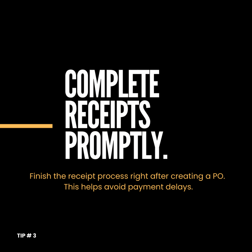 - Prompt receipt completion allows invoices to be processed quickly and helps prevent payment delays.