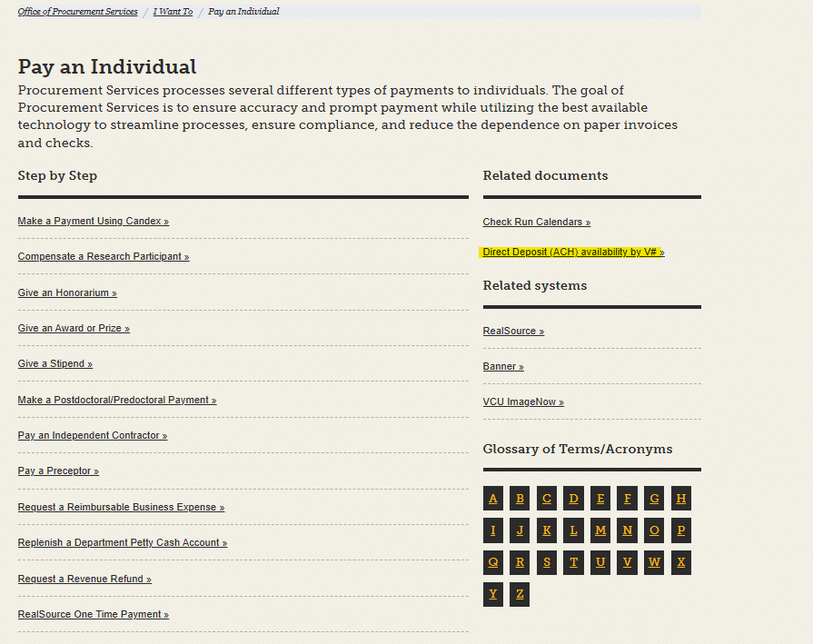 In the “I Want to Pay an Individual” section of our website, departments can now find a link to look up whether a student already has a direct deposit account set up in Banner. To use this feature, you will need the student’s V#.