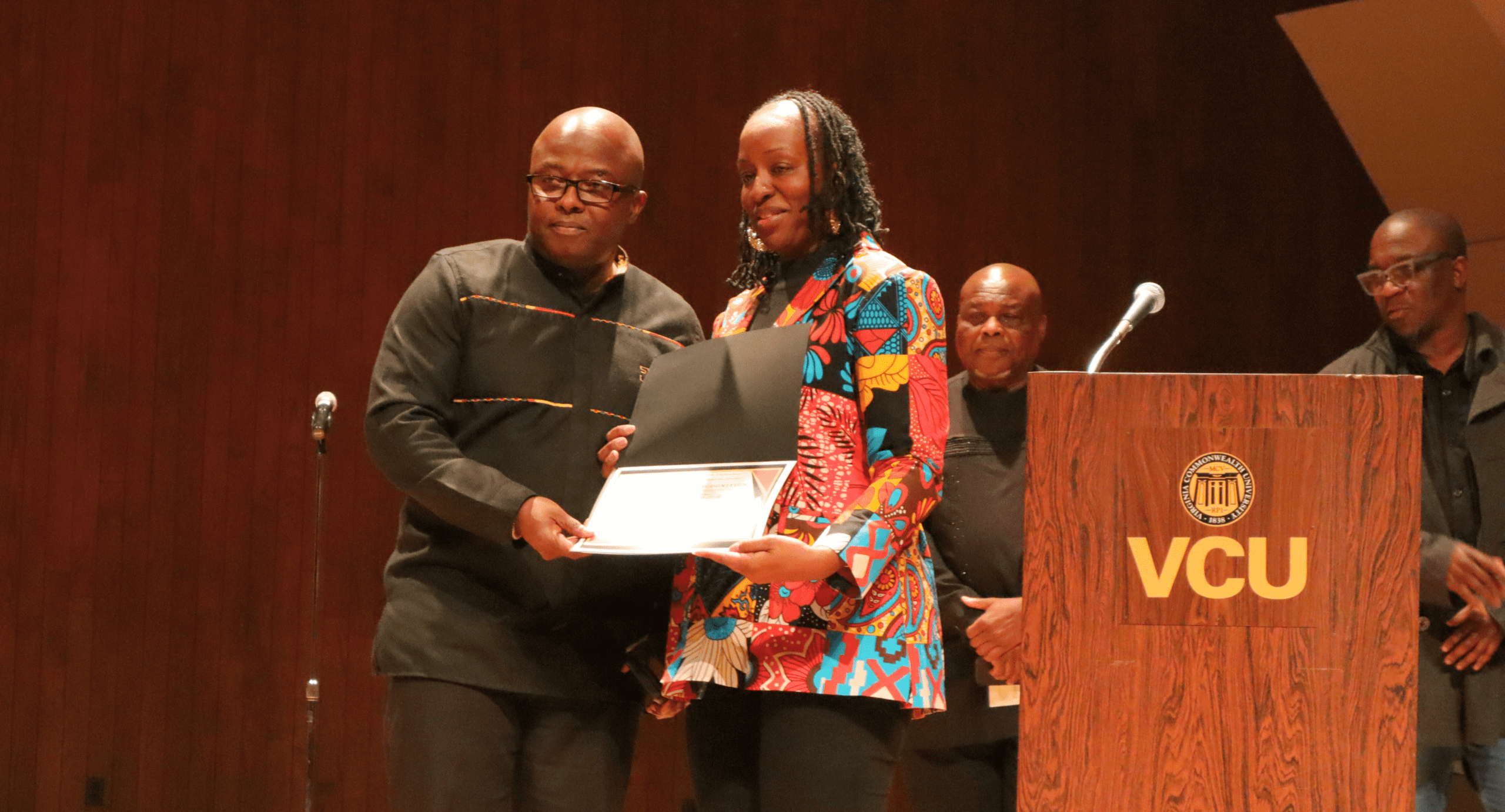 On Wednesday, February 25, Akpene was posthumously awarded the Carter G. Woodson Award for Academic Excellence by the VCU Department of African American Studies. Peter Cunningham, Ph.D., professor and interim department chair presented the award to members of Akpene’s family, who accepted it on her behalf.
